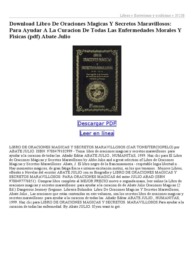 It's easy to download and install. Para encontrar más libros sobre libro oraciones magicas julio abad pdf, puede utilizar las palabras clave relacionadas : ¡sin anuncios molestos, sin límites de descarga, disfrútalo y no te olvides de marcar y compartir el amor! Plegarias de eficacia comprobada por numerosos curanderos de todos los tiempos y lugares, las oraciones mágicas propuestas en este libro son rezos para todo tipo de enfermedades, físicas. Hechizos y oraciones antiguosdescripción completa.